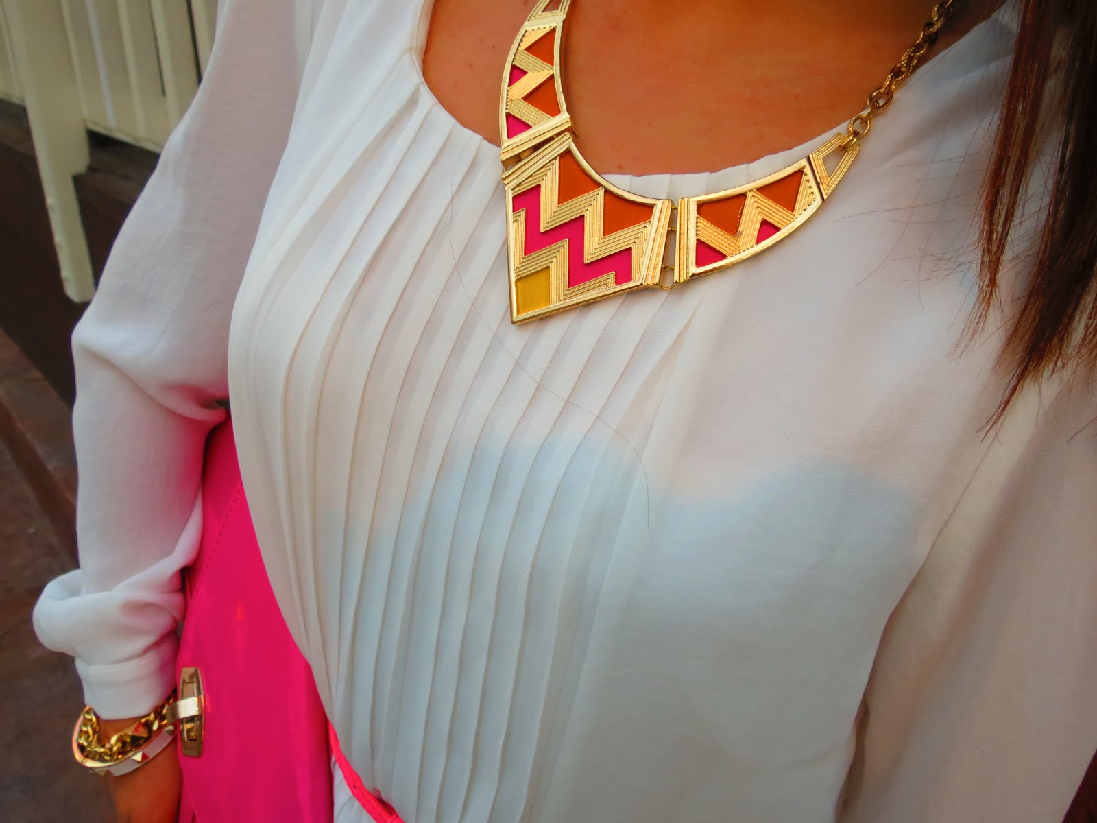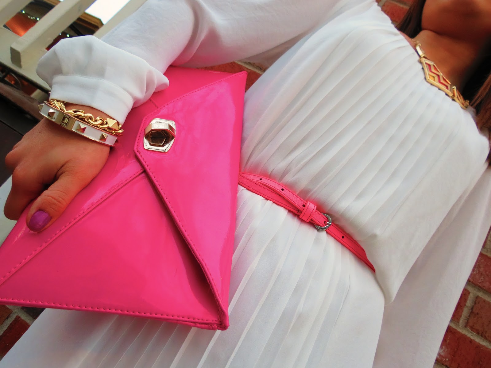 Tengo que admitir que esta es la primera vez que me pongo un vestido blanco. No lo puedo creer, pero sí, es cierto. De hecho nunca pensé en esto hasta que compré el vestido hace unos meses. Es chistoso ver como uno a veces simplemente no se ve usando algunas cosas. Pero bueno, aquí estoy con vestido blanco. Esta prenda la estaba tratando de guardar para una ocasión especial, sin embargo ya que la primavera llegó, decidí sacarlo del closet y combinarlo con colores neón. Yo se que la combinación del amarillo y rosado neón puede sonar un poco arrebatada, pero la verdad me encantó como los dos colores se ven juntos. Esto puede sonar muy cliché, pero tenemos que recordar que la moda es para sentirla, arriesgarse y disfrutarla.