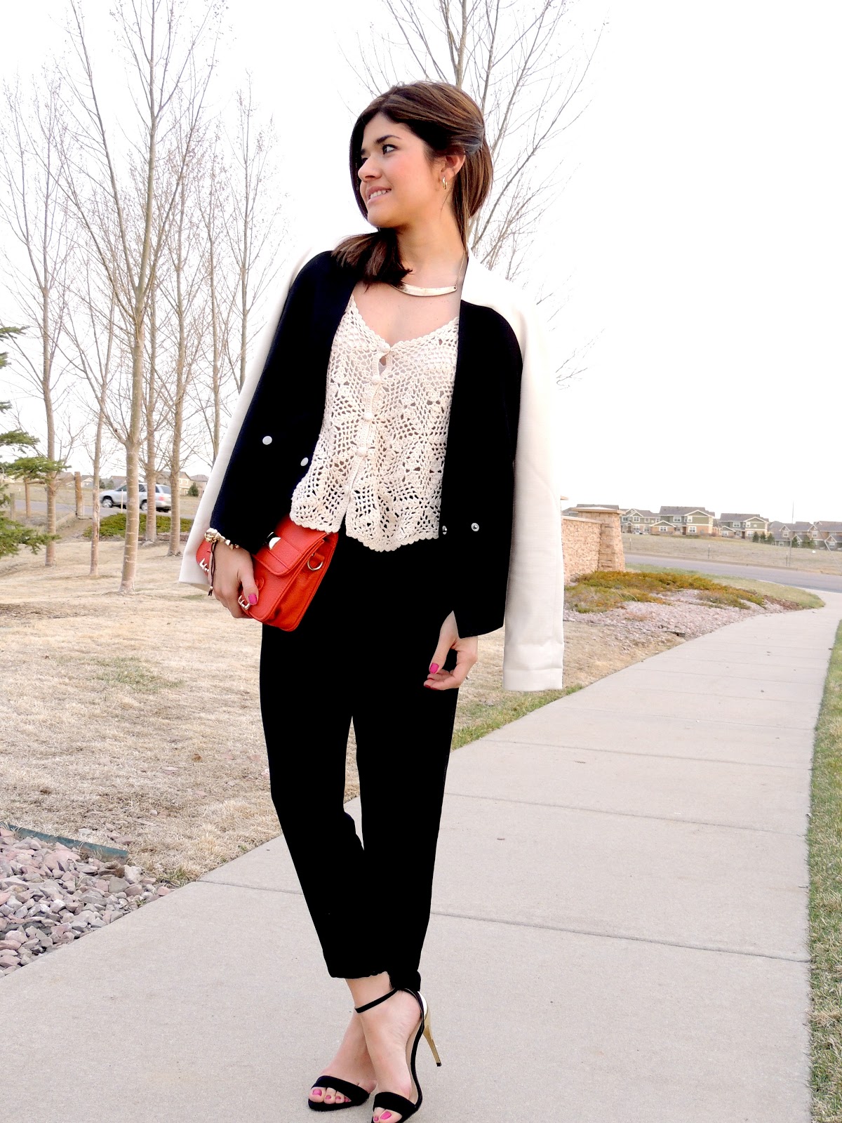 Mixing textures is one of my favorite things to do when I´m getting dressed. I have to admitt that it can be very tricky, but doing the right way can make give your outfit a fun twist. This crochet top is perfect for the hot days, but I have been wanting to wear it with something that wouldn´t make it look as summery. So for this look, I decided to stick to neutral tones and pair it with a beige and black blazer that would let the texture of the top stand out and baggy pants for a relaxed look. Accessories can be the ones that bring the pops of colors to the outifts, so in this case I wore this pretty Valentino inspired handbag that I got from Love Culture. Here is the look!