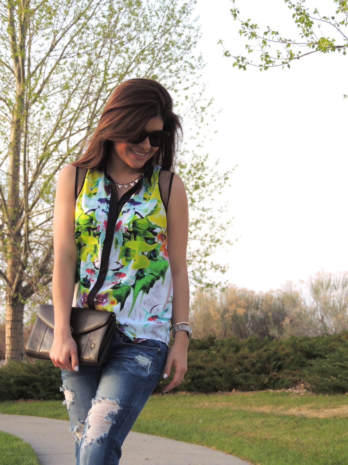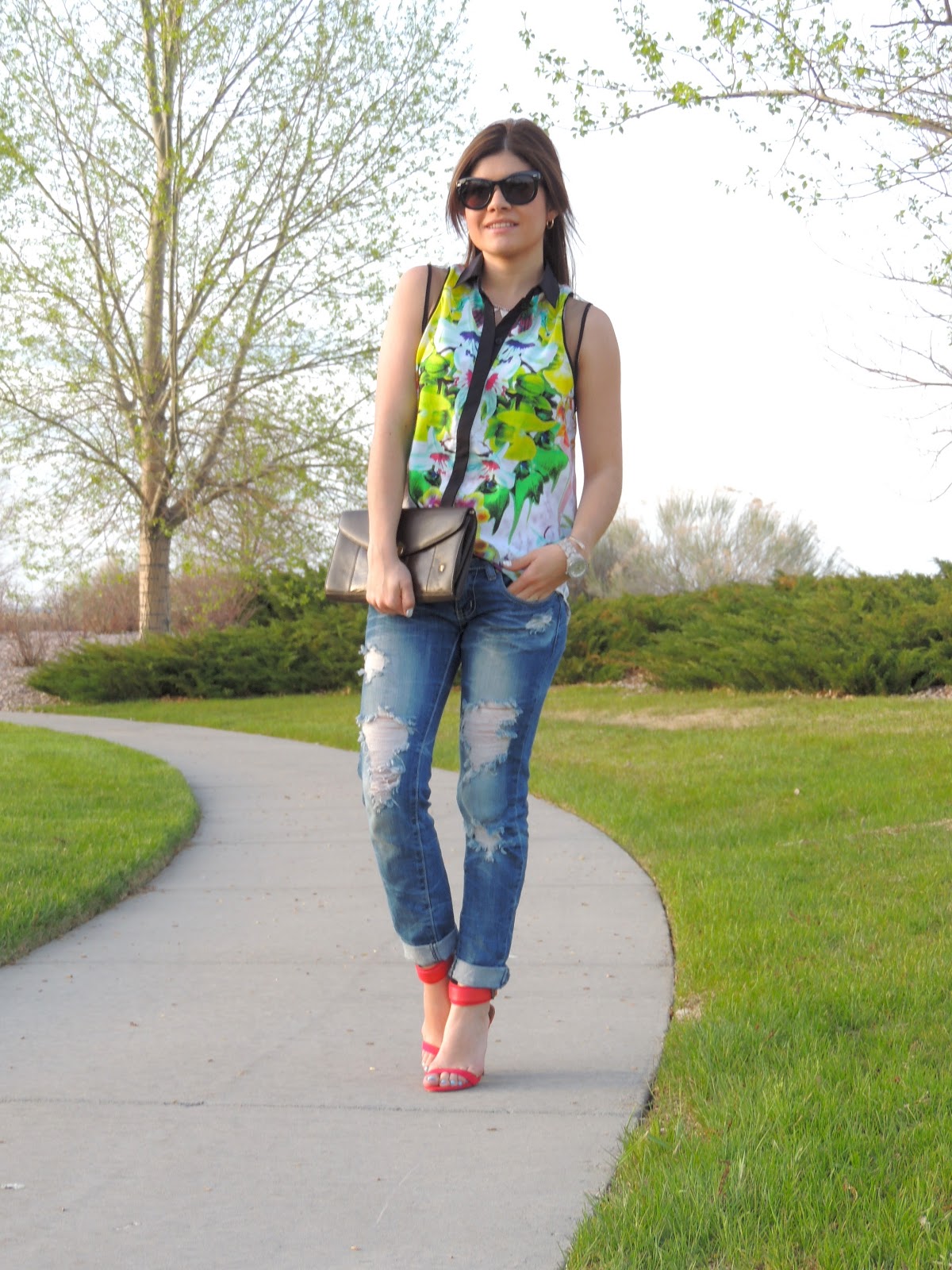 Color , color y más color es lo único que muchos queremos ponernos en este momento y ese fue el caso con este outfit. Desde un principio sabía que me quería poner esta camisa de estampado tropical y colores fuerte con unos de mis jean favoritos, mis jeans rotos, que nunca me faltan. Y hablando de ellos, quién no tiene un par de estos en su closet?! El que no los tenga, le aconsejo adquirir unos y pronto por que son los pantalones perfectos para esta época del año!