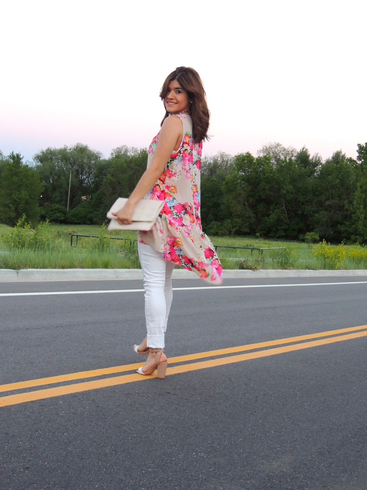 Going to back to the top, I must say this purchase was meant to be, and as soon as I saw it, I ¨felt¨the necessity of getting it. lol! like most of the things I see when I walk around the mall! I found it at forever 21, and it is definately one of the cuttest floral prints I have seen this season in stores. The fact that it´s high-low makes it so perfect for the summer, and the print and colors just make smile. Since it´s so long in the front I wasn´t able to wear it with shorts, so I paired it with white denim, and simple accessories.