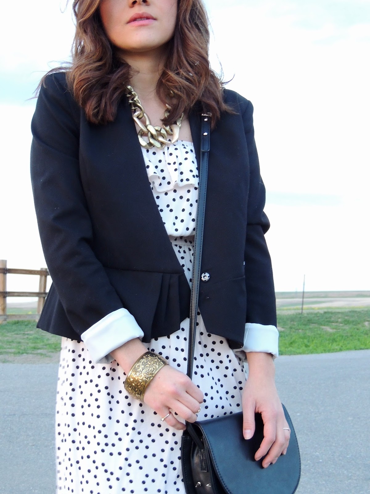 In this pictures you guys can see how I dressed It up, by wearing it with a black blazer, and gold accessories. Taking this dress from day to night is very easy and if you´ve been wanting to that with your favorite maxi dress, I recommend you to wear it with a blazer that doensn´t go longer than your hips, since it makess you look taller, and wear chunky accessories for a bolder look.