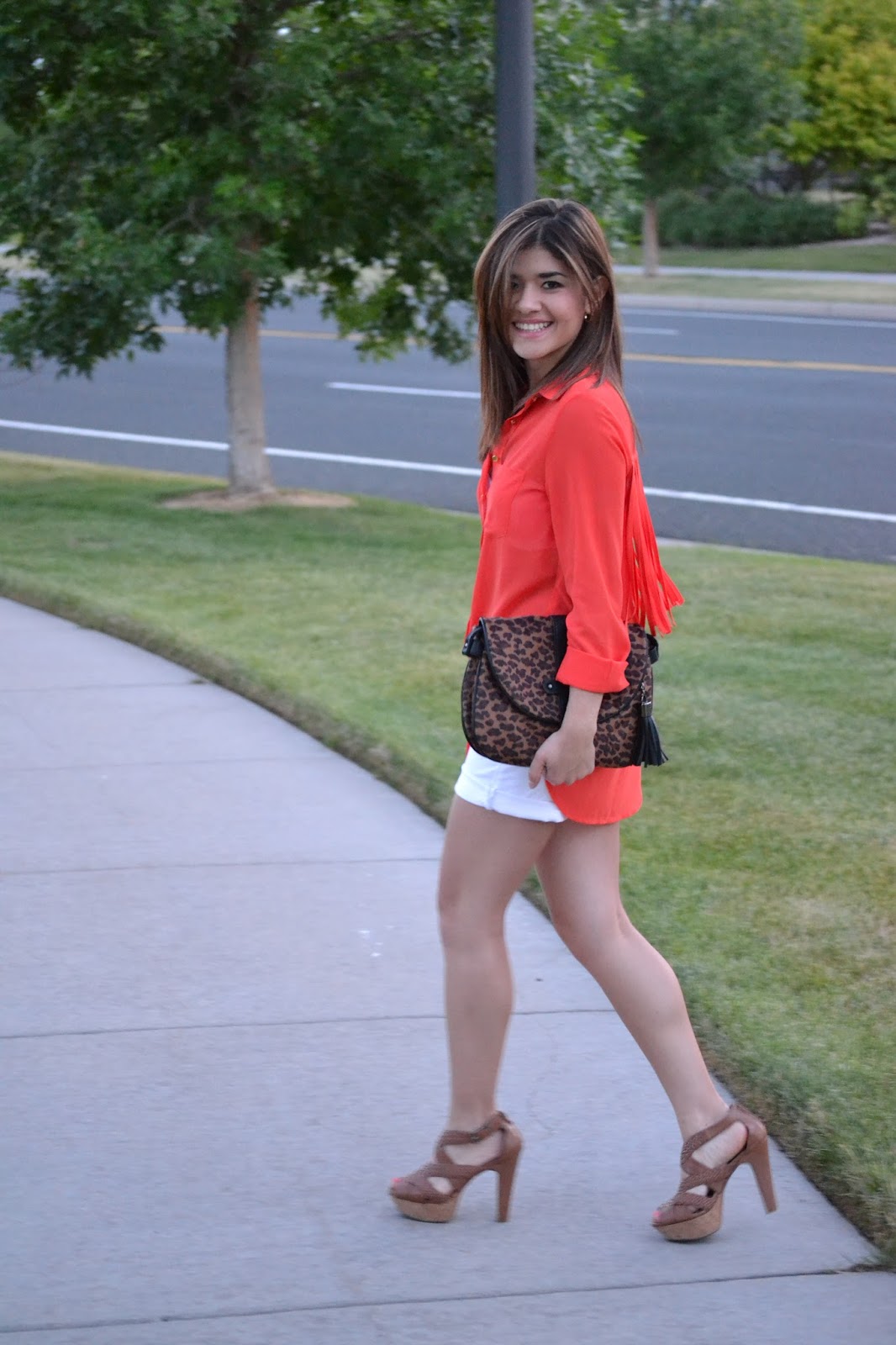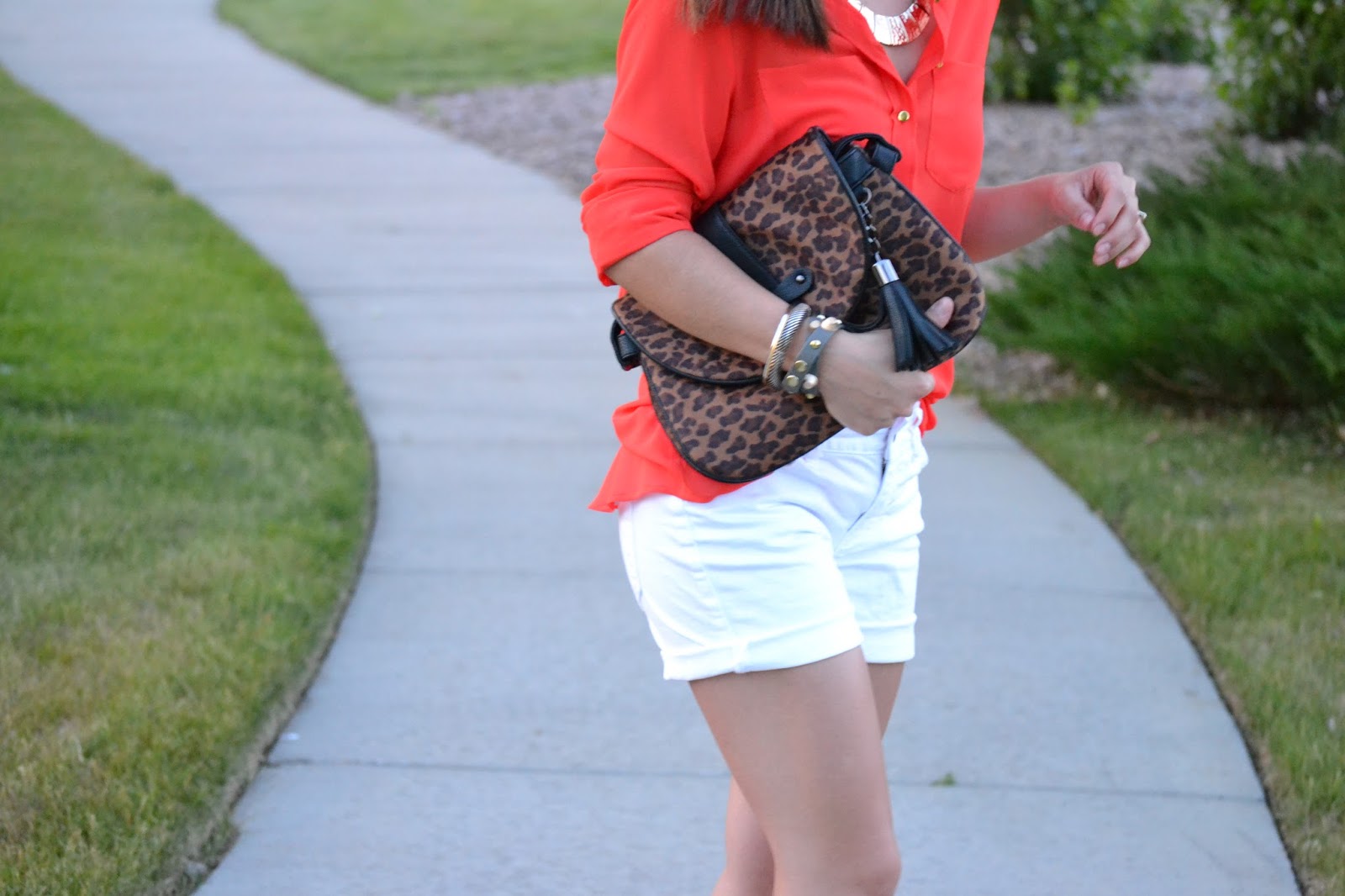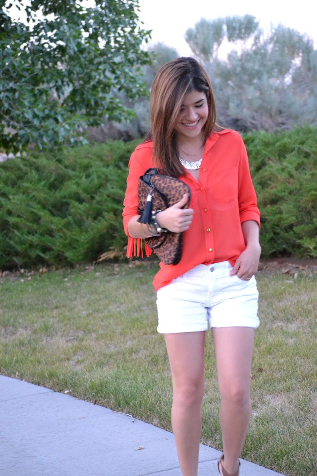 Hola! Hola! El domingo es el día perfecto para llevar los básicos de la temporada, y mis básicos para esta este verano son definitivamente las camisetas, tops de chiffon, shorts de jean y bolsos tipo sobre. El look de hoy termino siendo un poco más elegante de lo pensado, por el top de chiffon y las sandalias, pero sigue siendo una buena opción para un domingo, especialmente si tienes algún plan diferente ha estar en casa todo el día. Cuando uso colores fuertes, me encanta crear contraste con otro color ó algún estampado, y este bolso de animal print que me fascina, le agrego ese contraste perfecto al outfit.