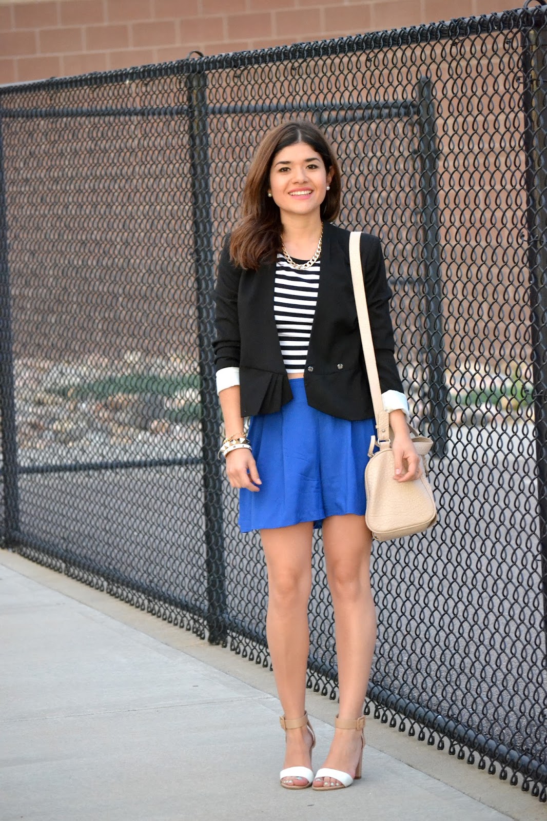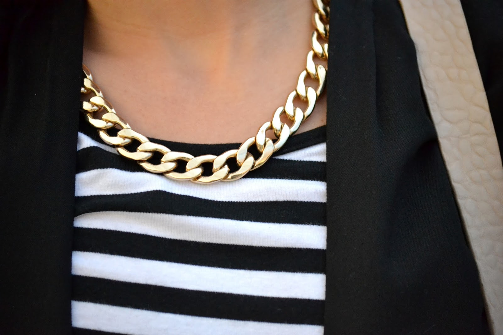 Then, I realized the outfit was taking a nautical direction, so, I added the black blazer, and gold accessories to finish it up. Very comfortable, yet chic enough to wear to it to work, right?