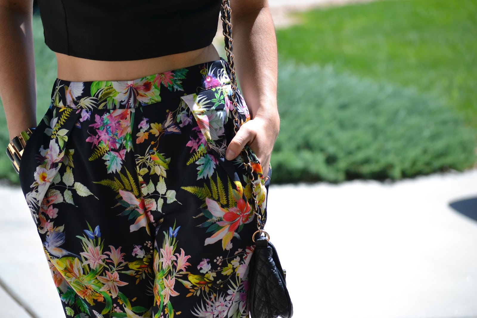 Estoy feliz de empezar esta semana con estos pantalones! Bueno eso la verdad suena como chistoso, pero cuando eres una obsesionada por la ropa, como lo soy yo, puedes tener una idea de lo que eso significa. Así como cuando algo te hace muy feliz, independientemente de lo que sea, así es como estos pantalones me hacen sentir! Fueron un regalo que recibí la semana pasada y mejor escogidos no pudieron haber estado. El estampado tropical es supremamente femenino y el satín, material del que están hechos, les da un movimiento perfecto.