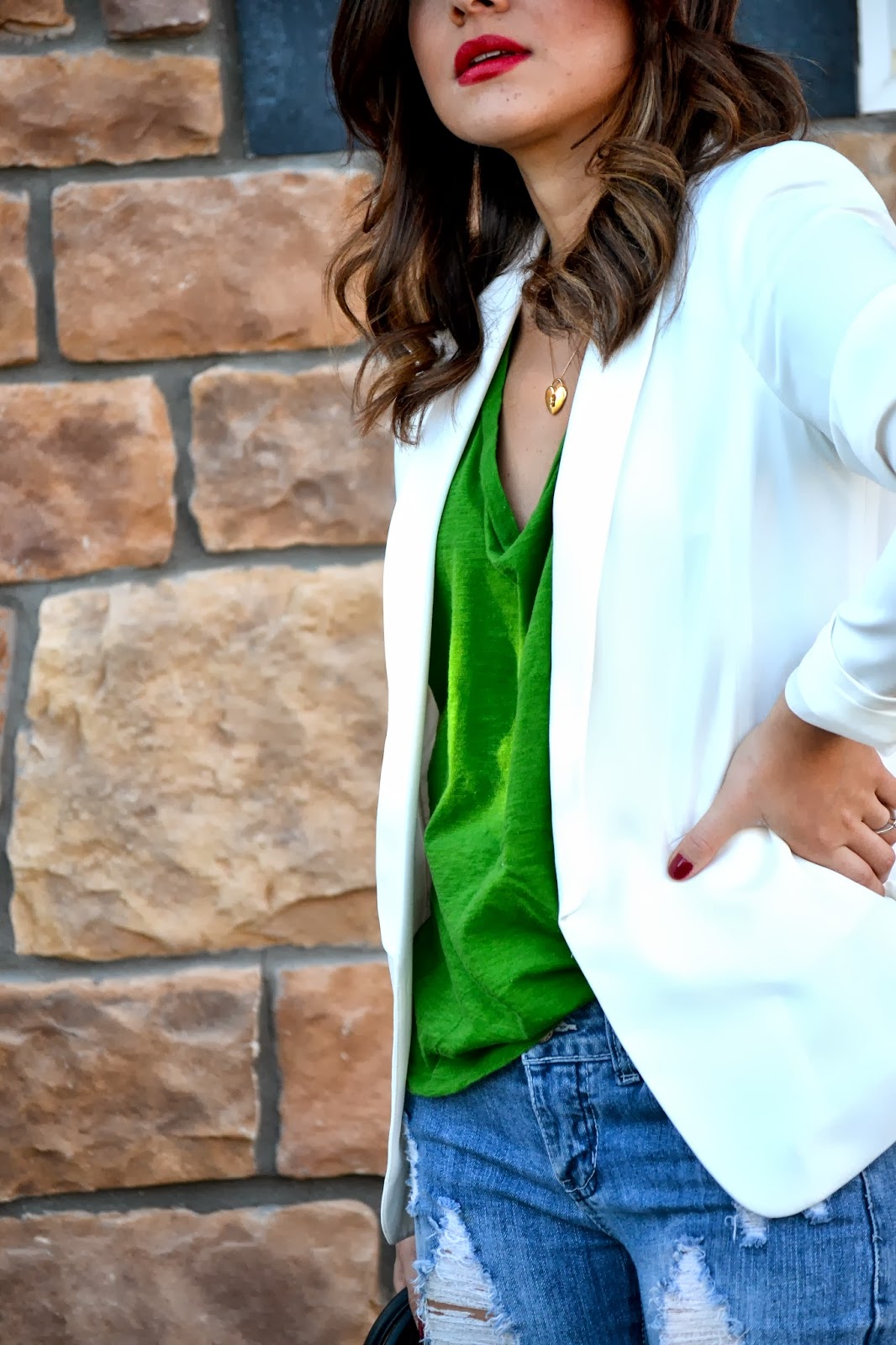 In this case, I wore it with ripped jeans, and a simple oversized green t-shirt.